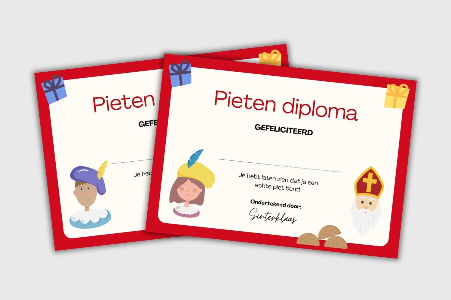 Na afloop overhandig je het Pieten diploma als bewijs dat de kinderen alle opdrachten hebben gehaald en klaar zijn om de Sint te helpen.